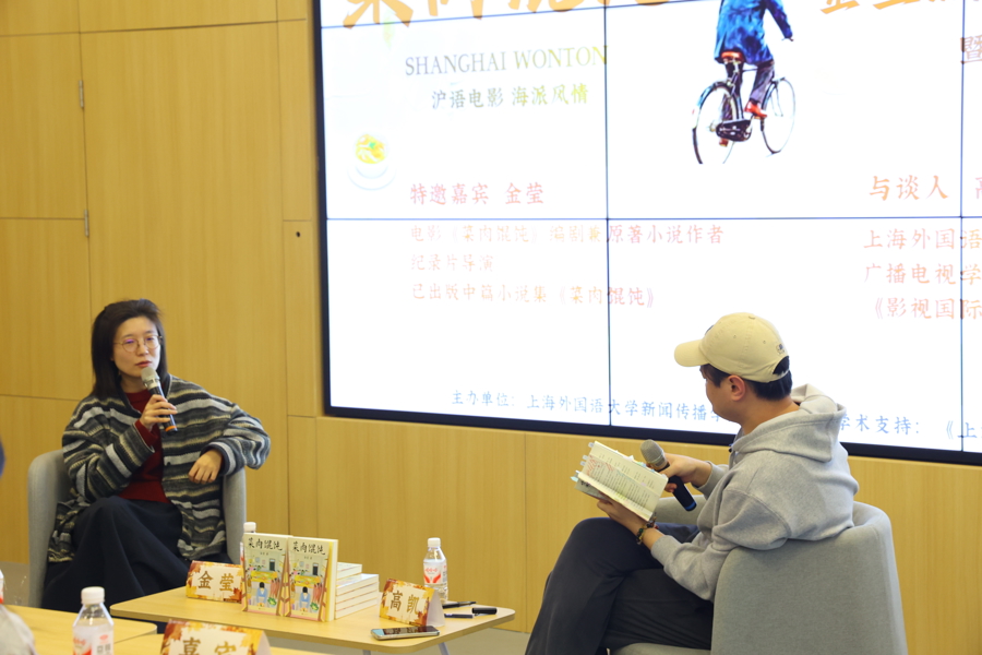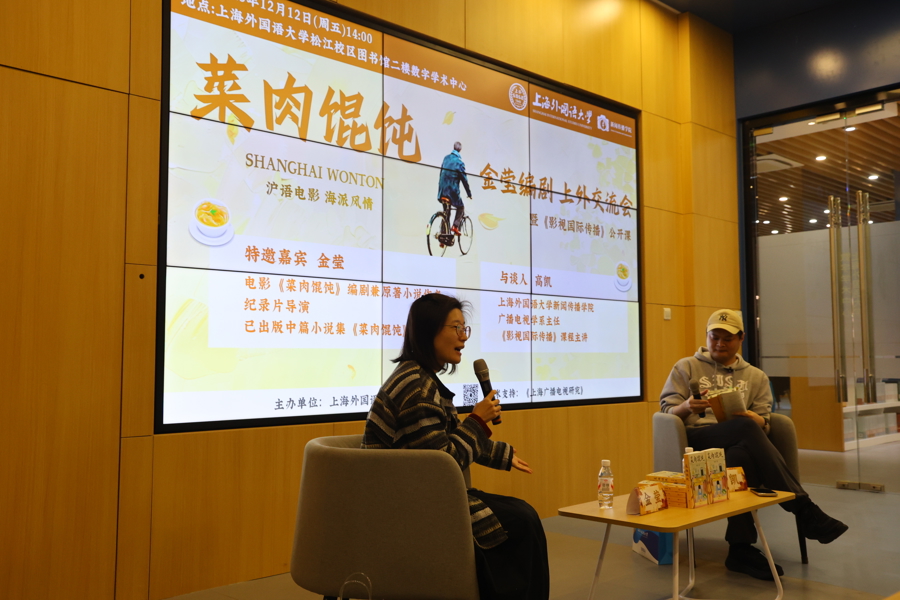 近日,电影《菜肉馄饨》的编剧兼原著作者金莹走进上海外国语大学《影视国际传播》课程的公开课现场,与课程主讲教师、广播电视学系主任高凯展开了一场深度对谈。